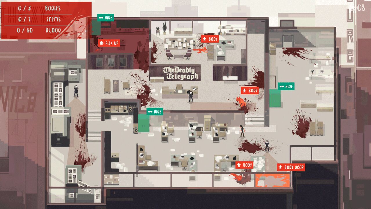 Faufilez-vous sur les scènes de crime en évitant d'être repéré par les gardes pendant que vous nettoyez le sang, cachez les corps et détruisez les preuves dans ce jeu stealth/action en 2D dans l'ambiance des années 70.